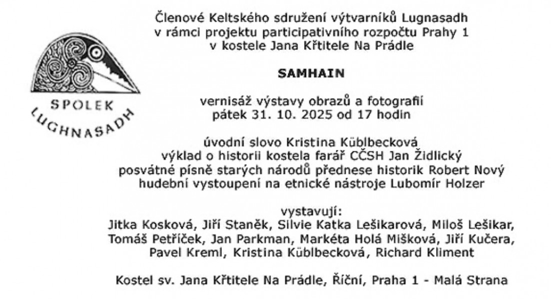 Vernisáž společné výstavy obrazů a fotografií Keltského spolku Lughnasadh v předvečer svátku Samhaim