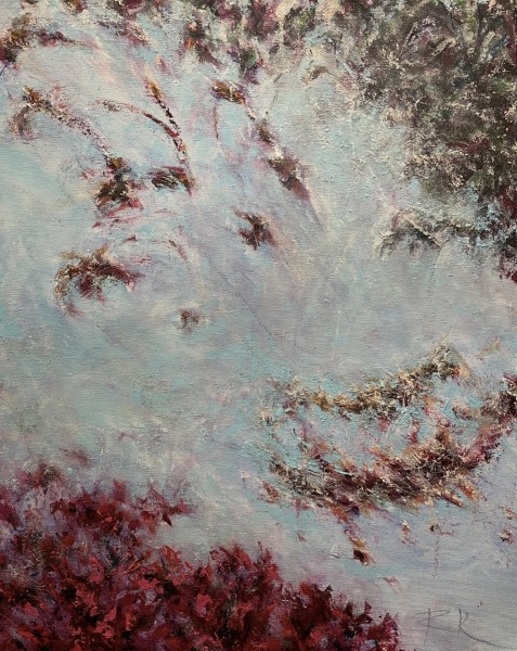 Malba založená na intuitivním gestu a barevném detailu. Vizuální prostor obrazu je tvořen přírodě podobnými skvrnami. Kolorit vychází z přírody i syntetických odstínů reality civilizace. Obraz odkazuje k iluzi řádu, který zdánlivě rozeznáváme. Záznam jedinečné situace v rámci dynamické existence vesmíru. Přirozený symbolický význam je přítomný ve všech složkách tvořících obraz - artefakt. Barevné variace se odehrávají podobny přirozeným rytmům přírody. Přírodní abstrakce.